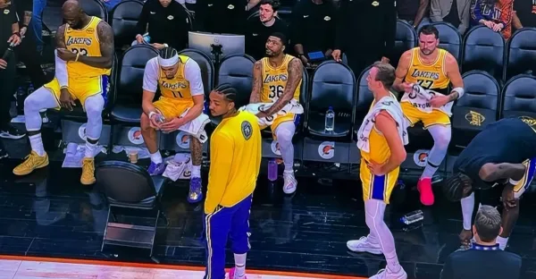 東契奇詹姆斯關係太不好,入場並排走卻拒絕交流,分坐替補席兩邊